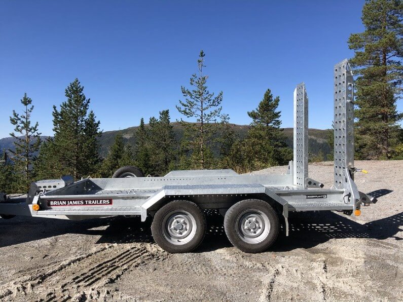 Det finnes et bredt utvalg av ekstrautstyr og vi skreddersyr tilhengeren etter ditt behov. Som standard kommer maskinhengeren med en forsterket ramme under plattingen for tung last. Dessuten har Brian James Digger Plant 2 integrert lås på koblingshodet, ekstra langt drag, skuffeplattform for gravemaskin foran planet og sideveis justerbar rampe med integrerte støtteben.