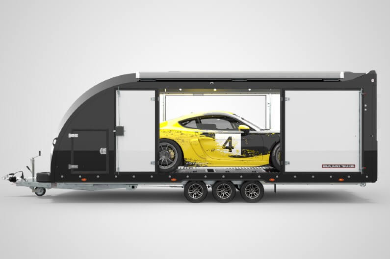 Brian James Race Transporter – Profesjonell og innovativ lukket biltransporter med mange finesser fra den engelske produsenten av høykvalitets tilhengere, Brian James Trailers. Den ultimate biltransporter i denne klassen! Brian James Race Transporter er egnet for sportsbiler og gatebiler, veteranbiler og eksklusive personbiler.