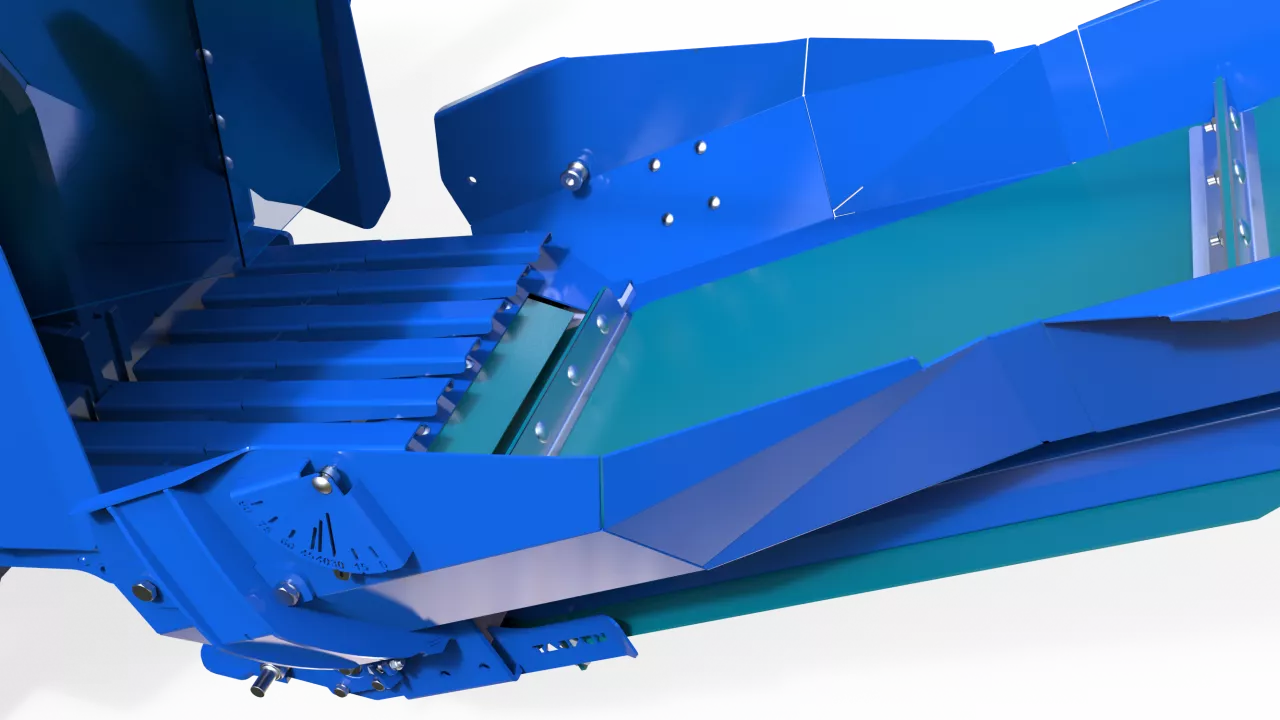• Bevegeligtransportør: Hydraulisk, to-trinns teleskop og automatisk hydraulisk beltestrammer; Dobbeltvirkende sylinder (bevegelser i alle retninger); Hydraulisk vinsj for justering av utløpstransportørens helning; Lengde 5 m, bredde 580 mm (bredere og lengre enn std på RCA400 og 480)